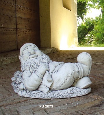 Deze massieve tuinkabouter is volledig vervaardigd uit witte betonsteen en behandeld met een waterafstotend product. Dit product zorgt ervoor dat groenaanslag geen kans krijgt om zich vast te hechten aan het beeld, ook regendruppels parelen netjes van het beeld af zodat het geen water opzuigt in de poriën.