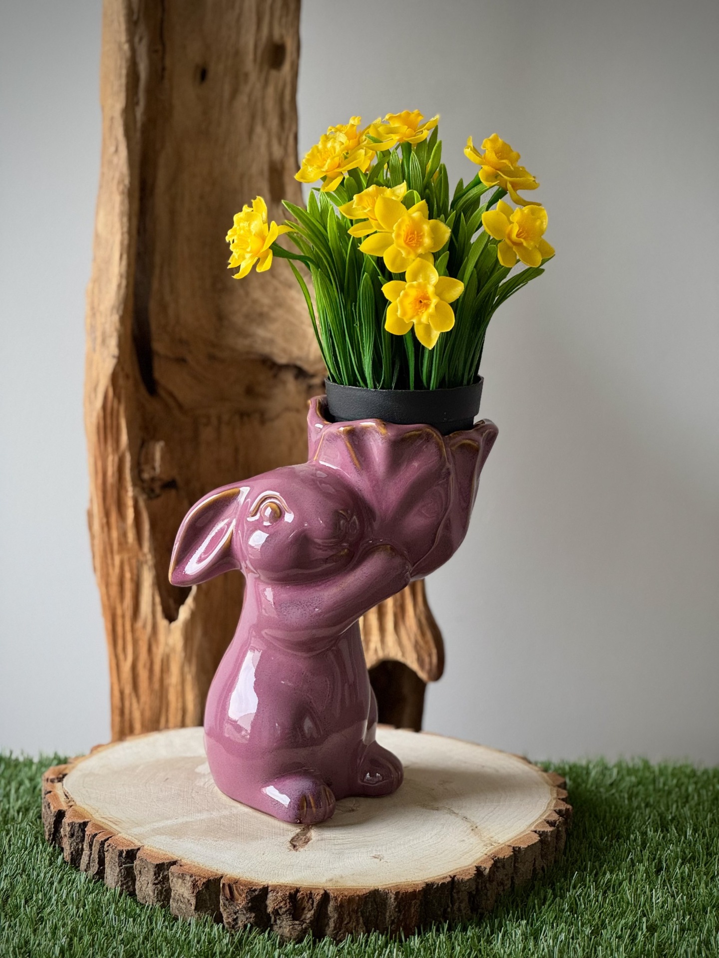 Konijn/paashaas met bloempot L Sammie violet 24,5 cm hoog