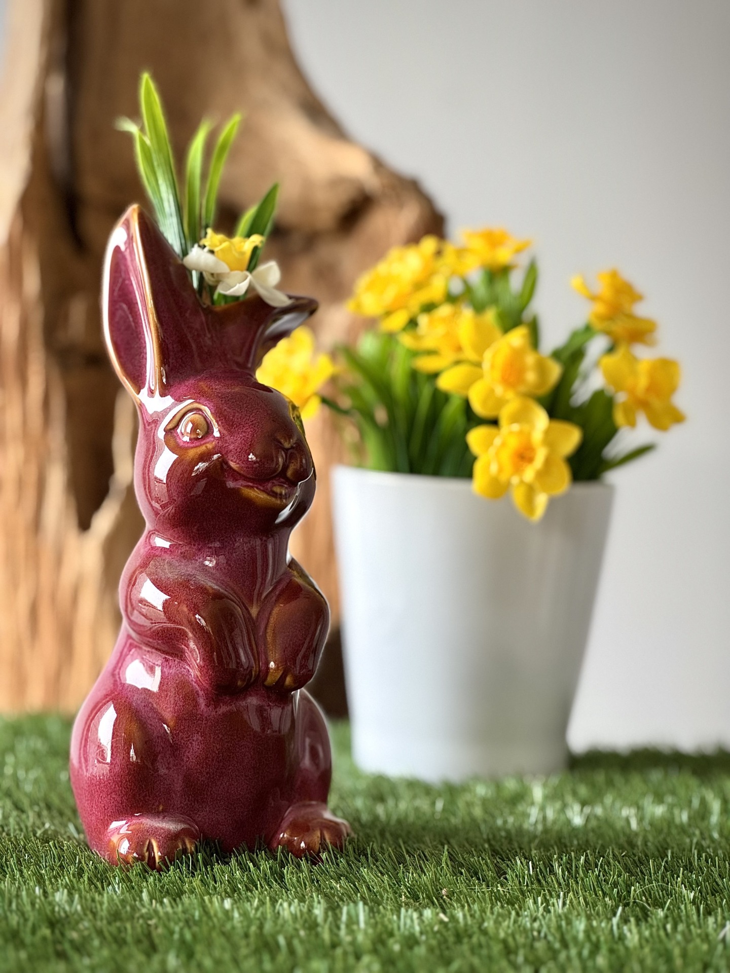 Konijn/paashaas vaasje L Sammie fuchsia 24 cm hoog