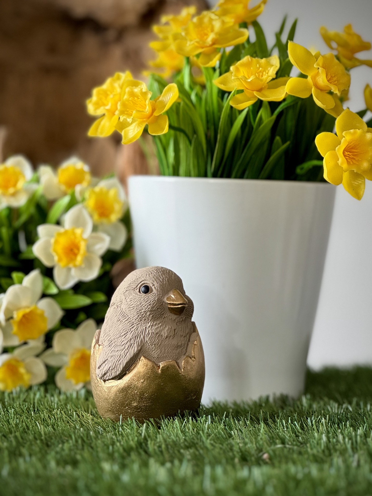 Kuiken uit ei cement 2 ass camel 9,5 cm hoog