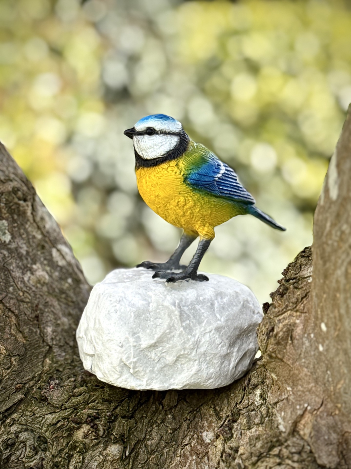 Bronzen Beeld: Vogel op rots Pimpelmees BRONS