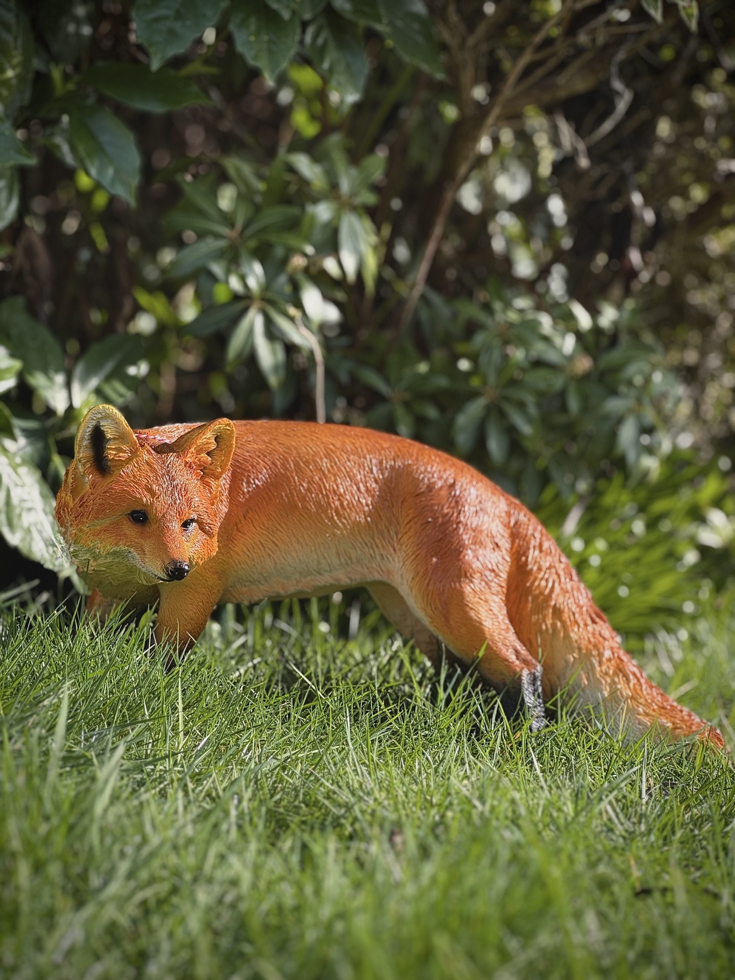 Deze vos is gemaakt van polystone en met de hand afgewerkt, waardoor het beeld bijna niet van echt te onderscheiden is.