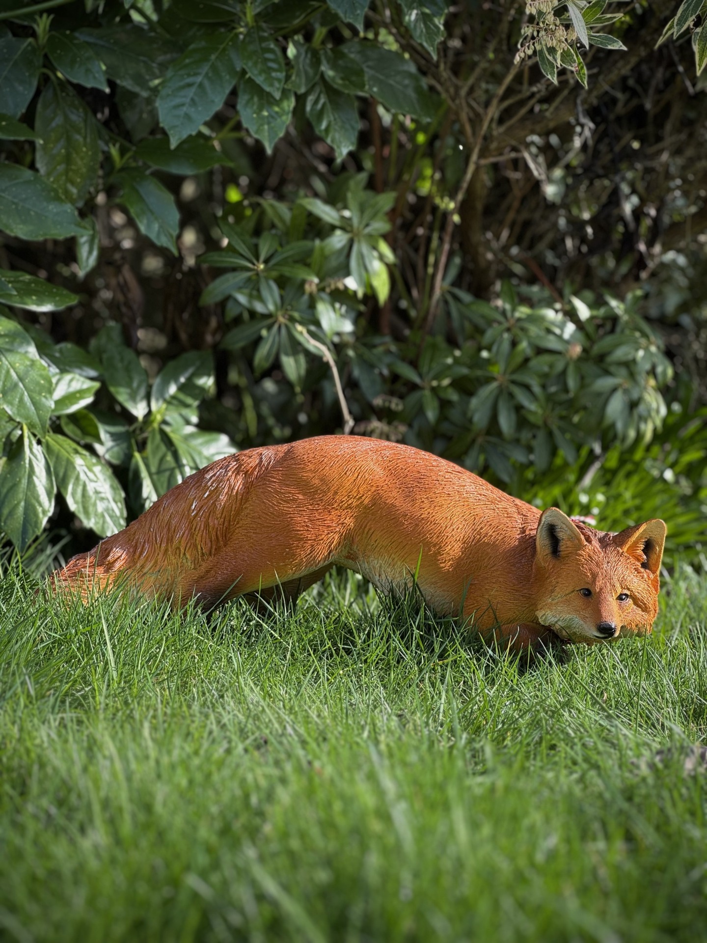 Deze vos is gemaakt van polystone en met de hand afgewerkt, waardoor het beeld bijna niet van echt te onderscheiden is.
